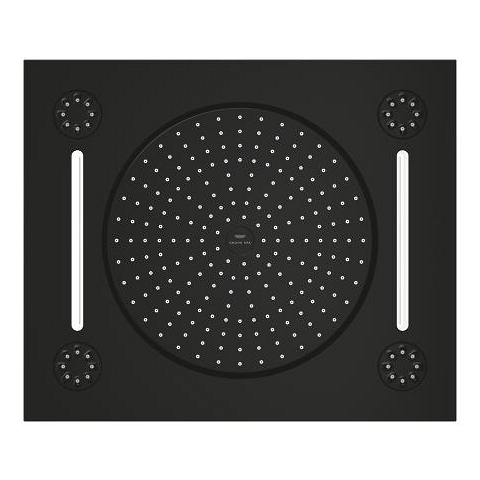 GROHE Rainshower Aqua allows you to create more than just a bathroom. Part of our refined SPA portfolio, it matches with the rest of the range to let you free your imagination and elaborate a space that is entirely yours to relax and restore jaded senses. Made of solid metal, the GROHE Rainshower Aqua 15" measures a generous 381mm (width) x 17mm (height) x 456mm (depth) and comes with 3 spray options to combine to suit your mood: GROHE Rain spray provides a soft and enveloping stream of pure water straight from the centre of the shower head; the four pulsating Bokoma sprays are placed one at each corner and can be angled to ease muscle tension just like a fingertip massage; and with their extra-wide flow, two separately controlled water outlets create the truly opulent GROHE XL Waterfall spray – a wide ribbon of water pouring down to create an exhilarating, refreshing and indulgent shower experience. Delicate GROHE DreamSpray technology ensures that the flow from each nozzle and all spray patterns will be entirely even, making your shower as enjoyable as can be. The handy silicone nozzles are designed to brush free of limescale with a simple wipe, while the super-stylish Phantom Black finish will make a personal design statement for years to come. The GROHE SPA collection has been designed to allow you to create your own holistic wellness zone, perfectly tailored to your taste. Mix and match this side shower with other Rainshower Aqua showers for a blissful, home spa experience, and complete it with our Grohtherm F and SmartContol thermostatic mixers and volume controls, coordinating perfectly in look and finish, and with models to match whatever configuration of shower heads, hand showers and side sprays you design.