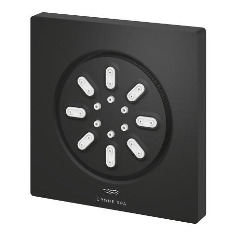 For a bathroom upgrade that exudes style and taste with optimum performance, the GROHE SPA collection lets you combine looks and functions in myriad ways to create your personal wellness zone. This stylish GROHE Rainshower Aqua body spray offers 2 different spray patterns to suit your mood: the GROHE PureRain spray is a soothing spray to relax you, while the ActiveJet spray is a pulsing jet powerful enough to give your body an invigorating massage. You can combine them with any other modular elements from our Rainshower Aqua range: the Mono, Duo and Cascade ceiling showers, and the Mist and/or Pure Spray formers designed to fit with a range of ceiling shower covers. It is possible to combine 2, 3 or 4 or even up to 6 side showers in one design, depending on available flow rate. Control is easy and intuitive – starting the water flow makes the spray head pop out of its cover plate, meaning you can easily switch between the two spray patterns by turning it. When you stop the water it retracts back into the cover plate for a flush, streamlined surface. The throw distance of the spray is 600mm, and GROHE DreamSpray technology ensures that the flow from each nozzle will be entirely even, making your shower as comfortable and enjoyable as can be. Water flow is limited to 3.3l/min, so you can combine eco-conscious water consumption with complete showering pleasure. The shower’s silicone nozzles are designed to brush free of limescale with a simple wipe, and the super-stylish Phantom Black finish will make a personal design statement for years to come. A minimum of 1 bar of pressure is recommended. Not suitable for use with an instantaneous heater. The GROHE SPA collection has been designed to allow you to create your own holistic wellness zone, perfectly tailored to your taste. Mix and match this side shower with other Rainshower Aqua showers for a blissful, home spa experience, and complete it with our Grohtherm F and SmartContol thermostatic mixers and volume controls, coordinating perfectly in look and finish, and with models to match whatever configuration of shower heads, hand showers and side sprays you design.